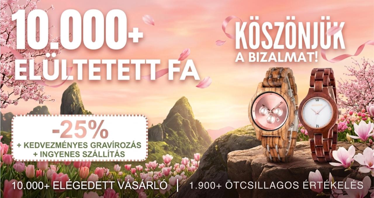 Termékeink vásárlása nem csak divatos és környezettudatos döntés, hanem egyben jelentős segítséget is jelent a természetnek! Bármely általunk kínált fa karóra megvásárlása után cégünk elültet 1 fát, faültetési projektek keretein belül a One Tree Planted nemzetközi szervezettel együttműködve. A fák ültetése szerte a világon történik, és a projektekhez azonosított területeken elősegítik az élőhelyek megőrzését és a környezet védelmét. A vásárlóinknak így lehetőségük nyílik arra, hogy egy kis részt vállaljanak a világ zöldítésében és hosszú távú környezetvédelmi hatásokat érjenek el.